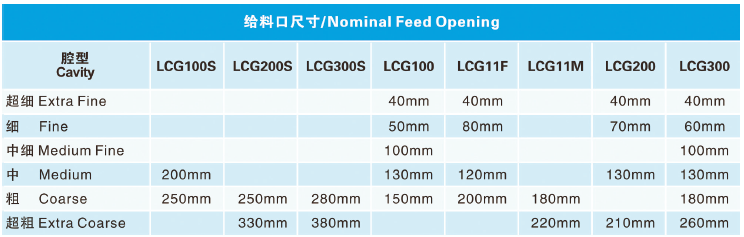 樂礦 LCG 系列圓錐破碎機可以針對不同的生產(chǎn)要求輕松調(diào)整腔型,通過選擇不同的破碎腔型,同一臺破碎機可用于破碎生產(chǎn)過程中的第2 段、第3 段或第4 段,以生產(chǎn)不同尺寸的最終產(chǎn)品。通過沖程更換功能可以輕松地對破碎機物料通過量進行調(diào)整,以便與其他破碎設(shè)備的運轉(zhuǎn)相協(xié)調(diào)。LCG 系列圓錐破碎機廣泛的適用性得益于同一主機結(jié)構(gòu)可以通過更換襯板來獲得不同破碎腔型,因而能夠根據(jù)破碎流程的變化來調(diào)整破碎機的腔型,適用性更廣。